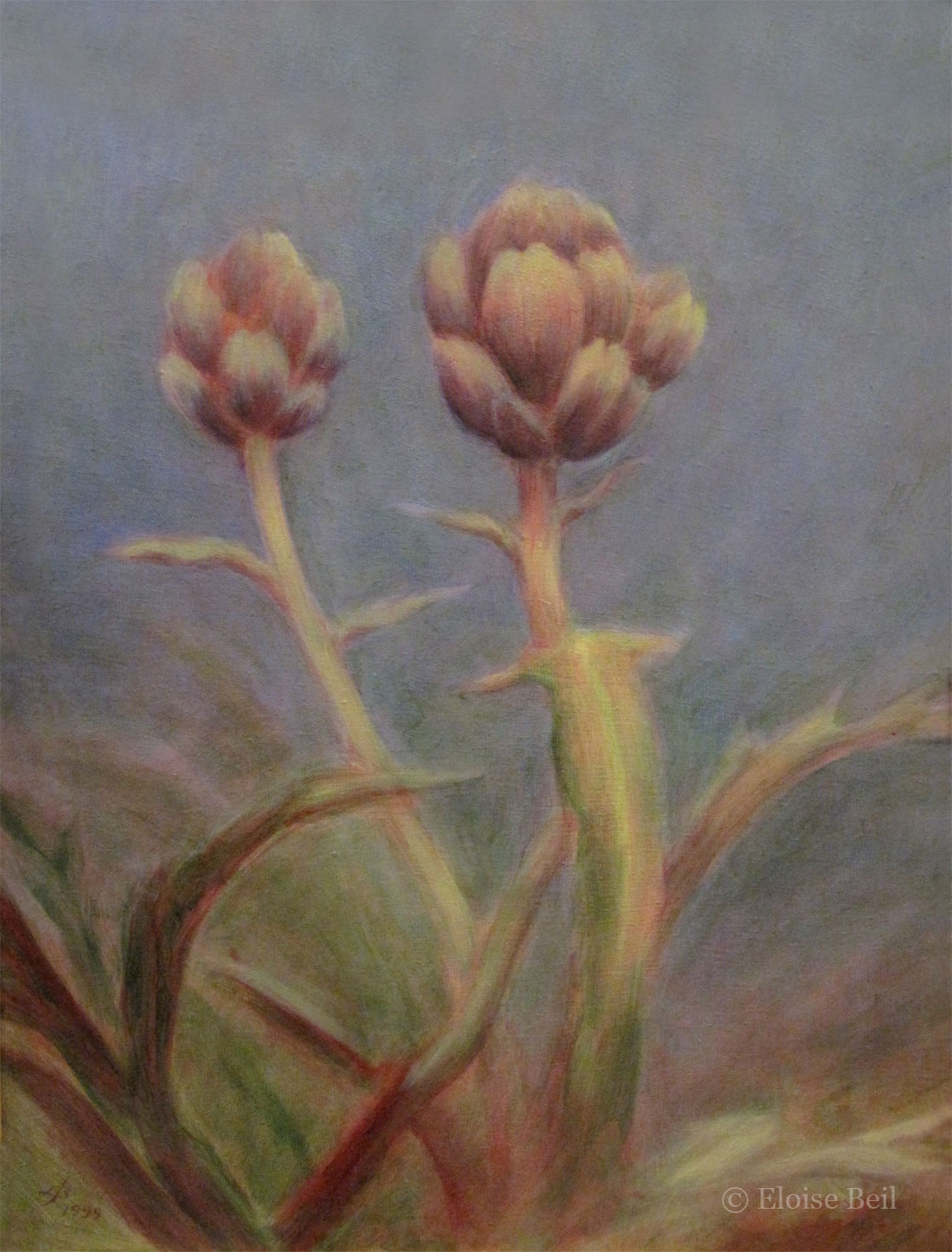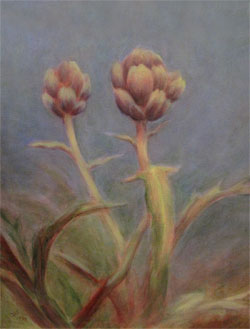 Artichokes - Full Bloom Oil on gessoed panel 12 " x 12" |